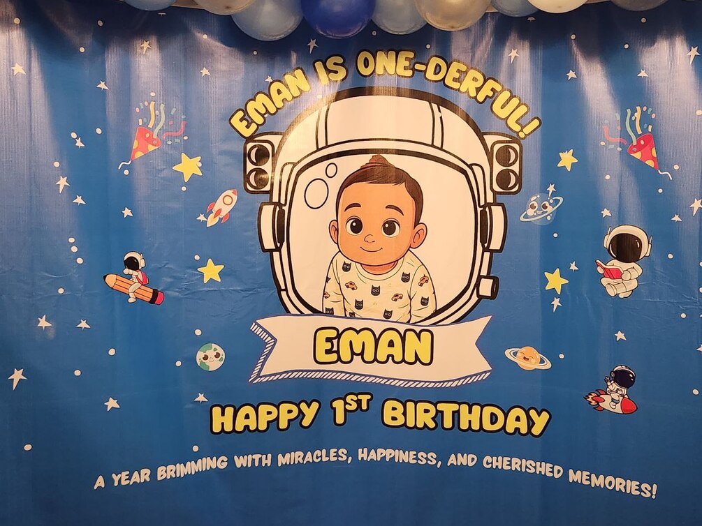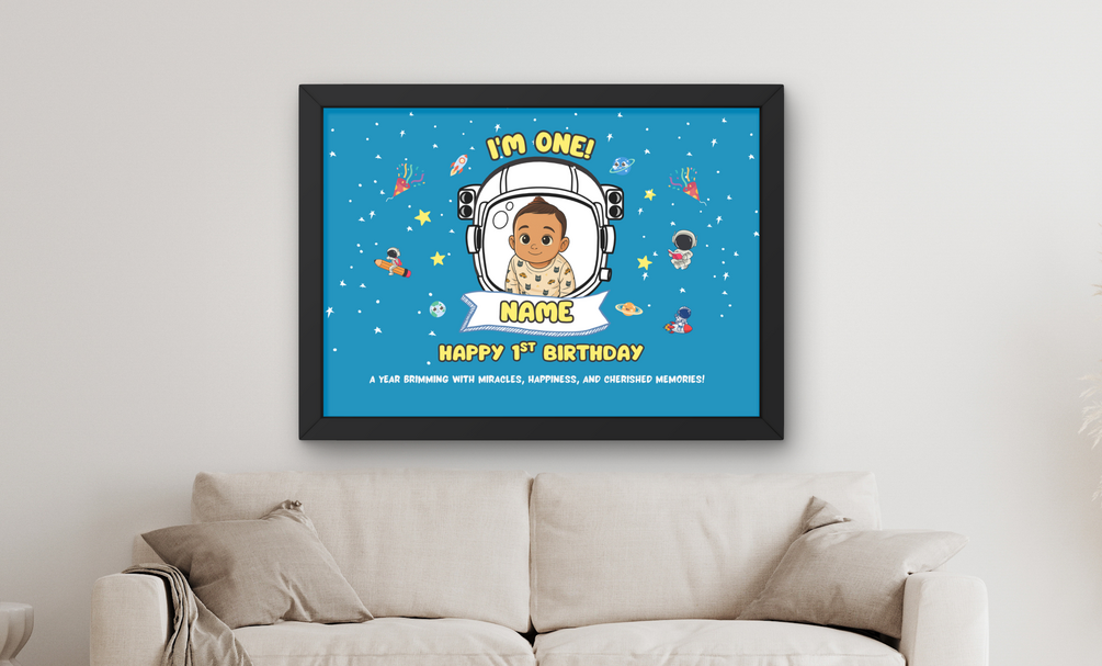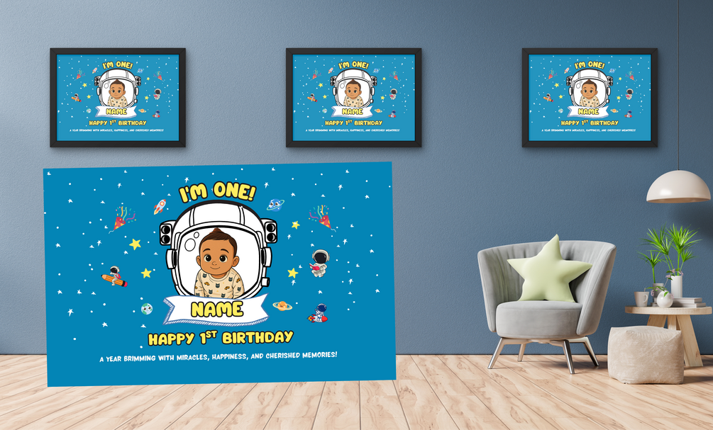 Editable Galaxy-Themed Banner for 1st Birthday – Custom Name, Year & Colors