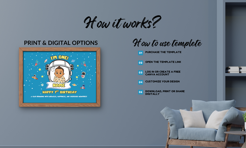 Editable Galaxy 1st Birthday Banner – Personalize in Canva and download instantly!