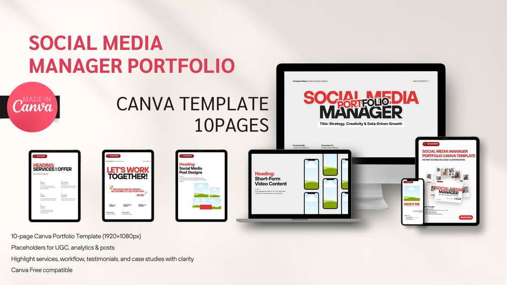 Social Media Manager & UGC Portfolio Template | Canva Editable (10 Pages)